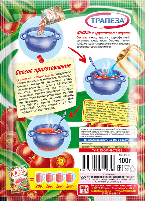 Трапеза Кисель «Брусничный»+4 вкус быстро готовится сытность качество