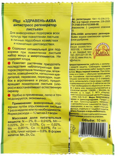 💳 Оплатить за товар можно при получении 🇰🇿 Есть бесплатная доставка по Казахстану от 1 дня 🎁 Копите бонусы с каждой покупки Серия: Здравень-аква «Здравень-аква антистресс регенератор листьев» — жидкое комплексное органоминеральное удобрение для внекорневых подкормок всех культур при пожелтении листьев в личных подсобных хозяйствах и комнатных цветоводствах. |