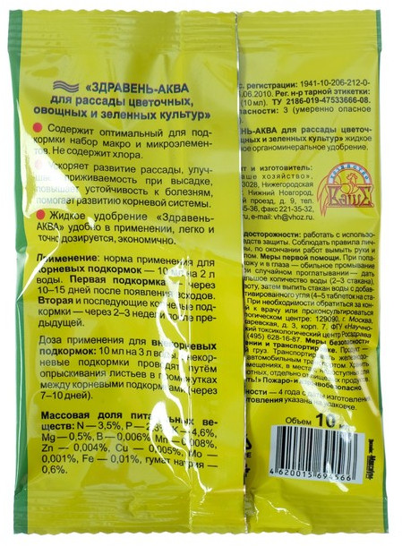 💳 Оплатить за товар можно при получении 🇰🇿 Есть бесплатная доставка по Казахстану от 1 дня 🎁 Копите бонусы с каждой покупки Серия: Здравень-аква «Здравень-аква для цветочных, овощных и зеленых культур» — жидкое комплексное органоминеральное удобрение для корневой и некорневой подкормки рассады (овощных, цветочных и зеленых культур) в личных подсобных хозяйствах. |