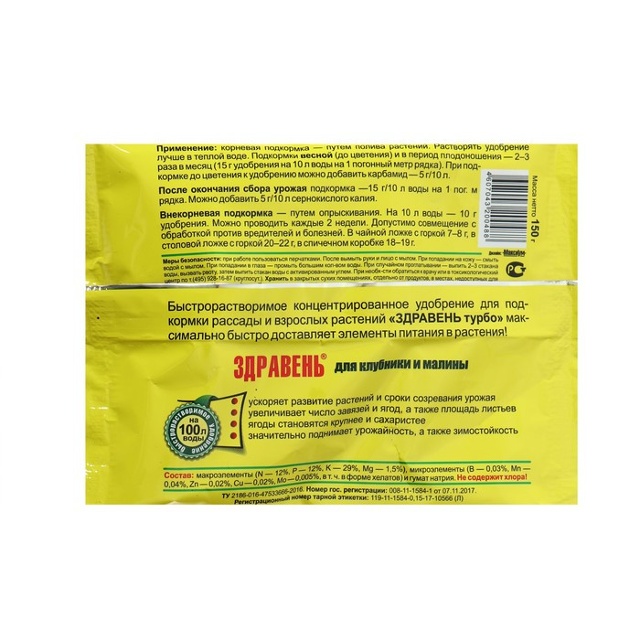 Полила этим удобрением клубнику, всё как описано. Буквально через минут 40, обратила внимание, что листья стали как бы крупней. Для винограда тоже покупала. Полила. Теперь только это удобрение буду брать.