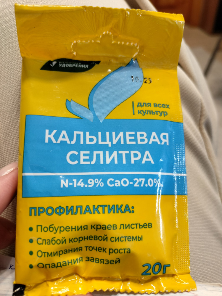 Буйский химический завод Удобрение минеральное «Селитра кальциевая»В данный момент этот товар отсутствует в продаже. Возможно, у нас найдется аналогичный или похожий товар здесь. «Селитра кальциевая» — это комплексное минеральное удобрение для подкормок овощных, плодовых, цветочных и декоративных культур. В его состав входят кальций (27 %) и азот (14,9 %). Средство представляет собой полусферические гранулы белого и желтоватого цвета. |