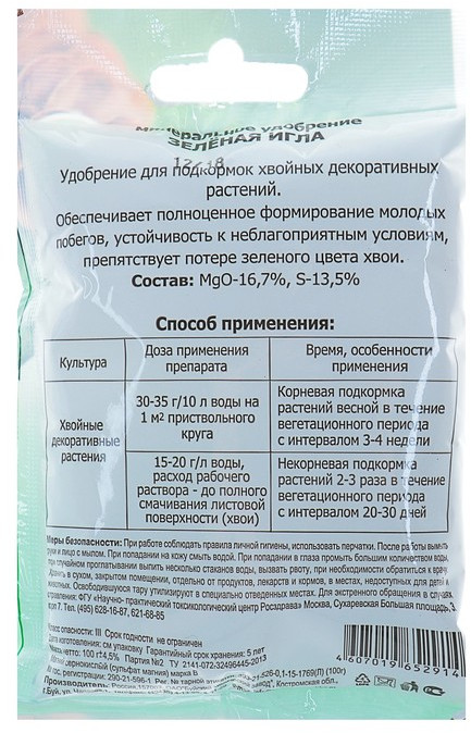 Буйский химический завод Удобрение минеральное «Зеленая игла»+15 стимулирует рост быстрый эффект подходит для хвойных доступная цена