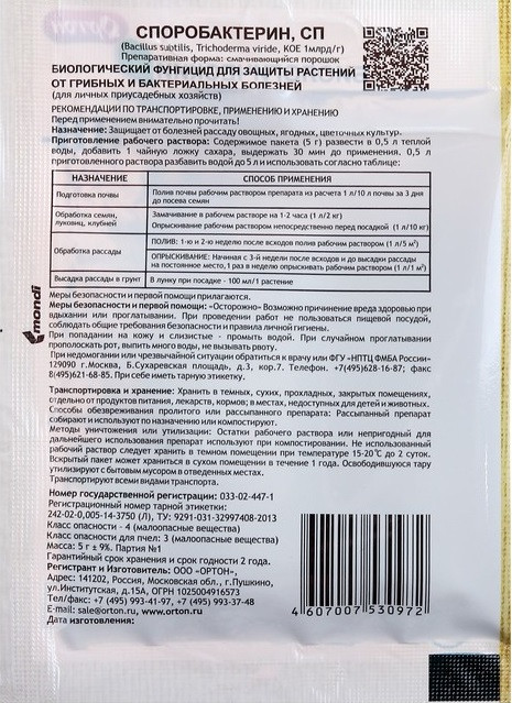 💳 Оплатить за товар можно при получении 🇰🇿 Есть бесплатная доставка по Казахстану от 1 дня 🎁 Копите бонусы с каждой покупки Биологический фунгицид «Споробактерин» для рассады — средство применяется для защиты рассады овощных, плодовых и цветочных культур от грибных и бактериальных болезней. |