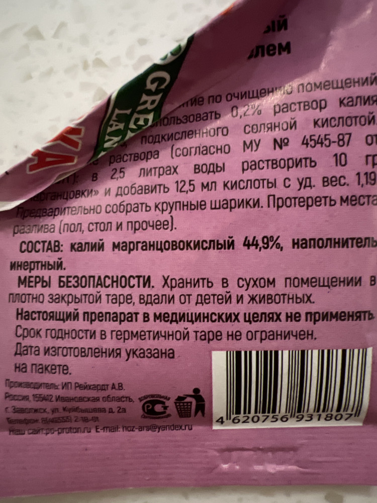 Green Land Калий марганцовокислый (марганцовка)+13 универсальность эффективность низкая цена аптечное качество обработка почвы