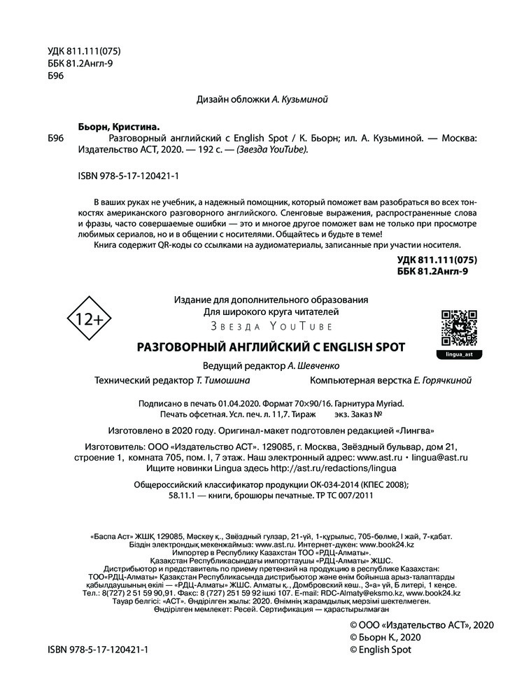 💳 Оплатить за товар можно при получении 🇰🇿 Есть бесплатная доставка по Казахстану от 1 дня 🎁 Копите бонусы с каждой покупки Серия: Звезда YouTube В ваших руках не учебник, а надежный помощник, который поможет вам разобраться во всех тонкостях американского разговорного английского. Сленговые выражения, распространенные слова и фразы, часто совершаемые ошибки — это и многое другое поможет вам не только при просмотре любимых сериалов, но и в общении с носителями. Общайтесь и будьте в теме! |