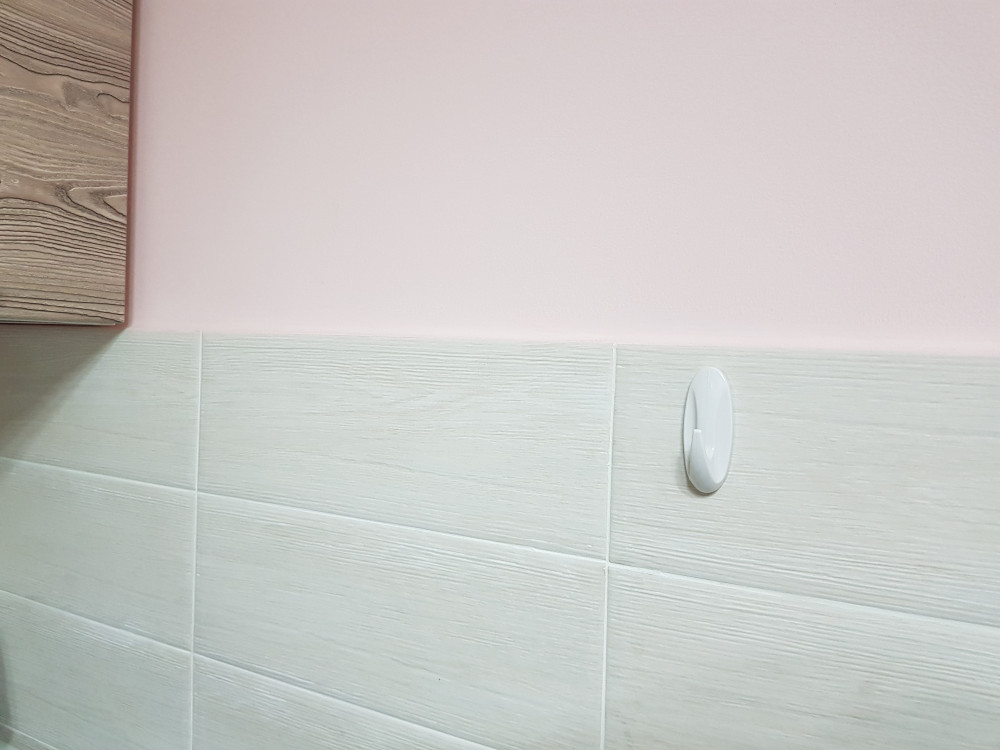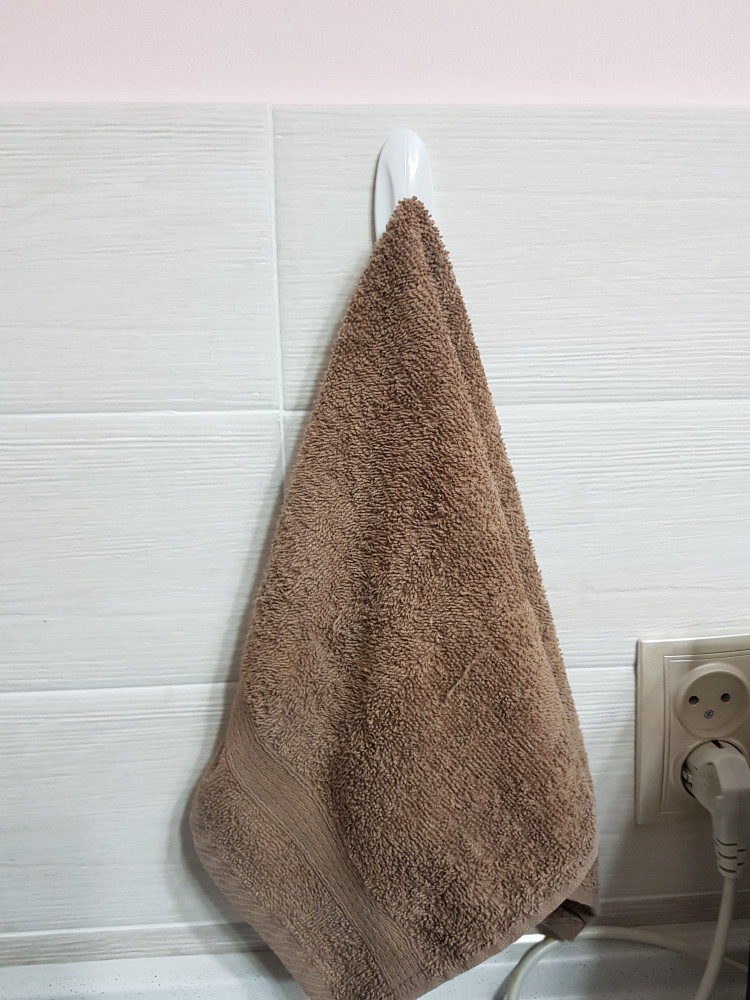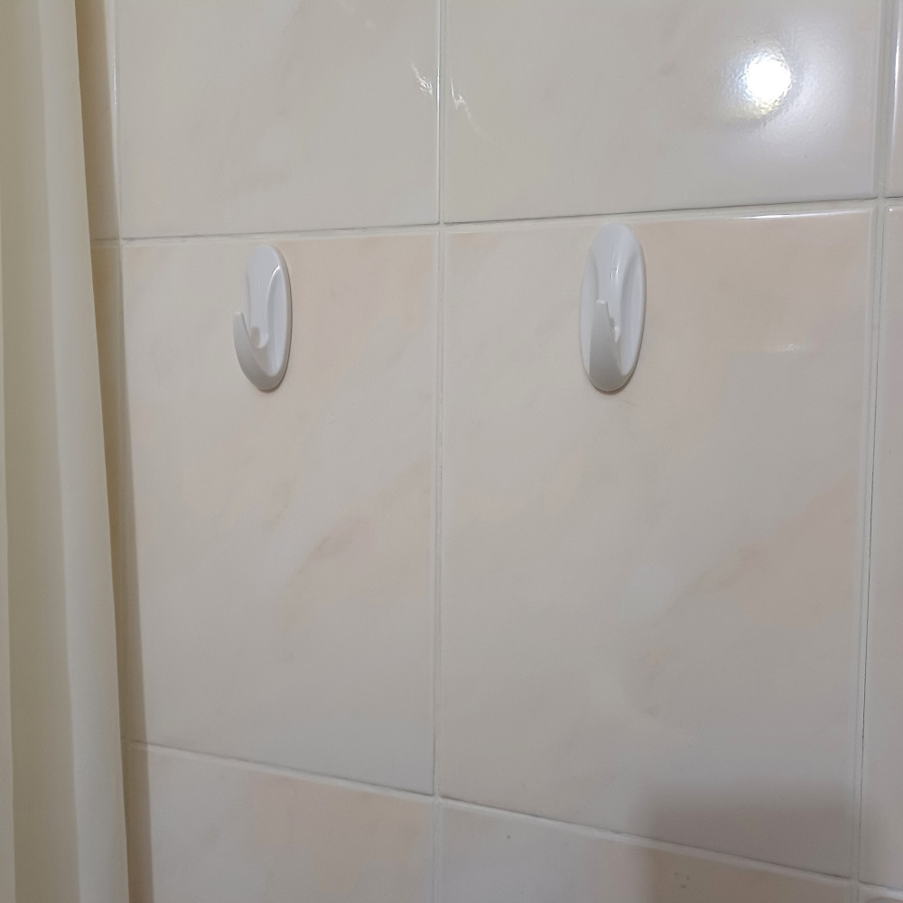 Приклеила на рифленую поверхность кафеля по инструкции, обезжирила поверхность сначала обычной жидкостью для снятия лака для ногтей на ватном диске. повесила полотенце для рук и фартук. Смотрится лаконично и аккуратно на светлом кафеле. Пока висит, дальше посмотрим. Спасибо.