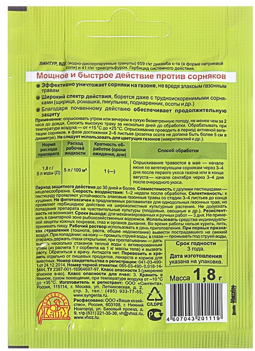Отзывы «Средство от сорняков на газонах «Линтур»»