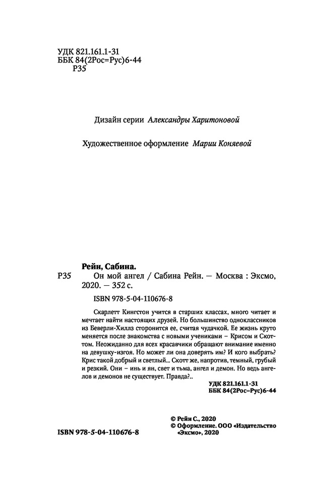 Серия: Young Adult. Инстахит. Та самая Сабина Рейн Скарлетт Кингстон учится в старших классах, много читает и мечтает найти настоящих друзей. Но большинство одноклассников из Беверли-Хиллз сторонится ее, считая чудачкой. Ее жизнь круто меняется после знакомства с новыми учениками — Крисом и Скоттом. Неожиданно для всех красавчики обращают внимание именно на девушку-изгоя. Но может ли она доверять им? И кого выбрать? Крис такой добрый и светлый... Скотт же, напротив, темный, грубый и резкий. Они — инь и янь, свет и тьма, ангел и демон. Но ведь ангелов и демонов не существует. Правда?.. |