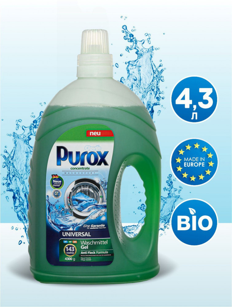 | Универсальные порошки и гели для стирки марки Purox это эффективные стиральные средства для светлых и цветных вещей для всех видов стиральных машин и для ручной стирки. Для ежедневного применения при малых и средних загрязнениях. Дополнительно порошки защищают стиральные машины от осаждения налёта, продлевая тем самым их службу. Не содержат цеолитов и фосфатов. |