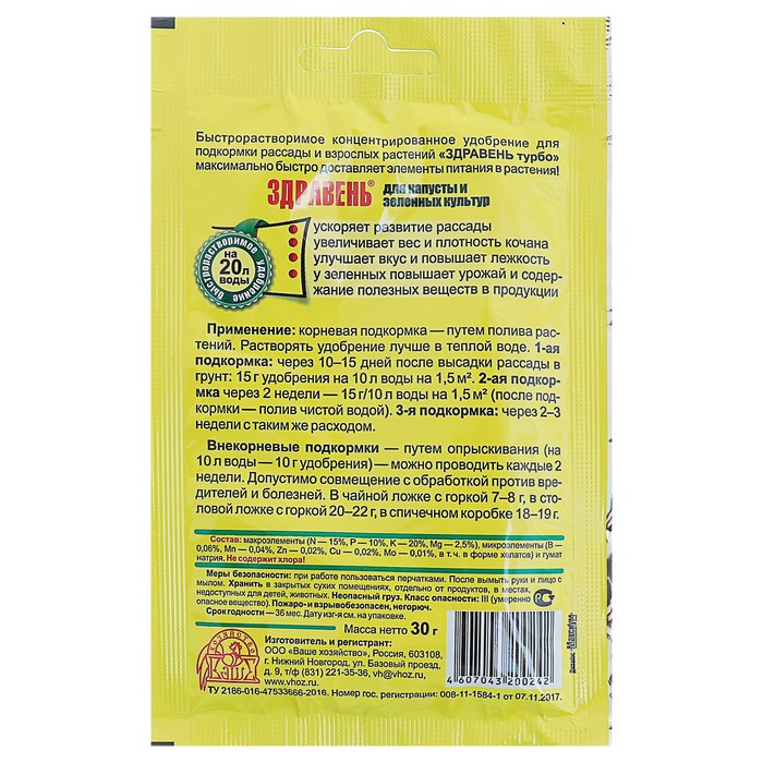 Отзывы «Удобрение для капусты и зеленных культур»