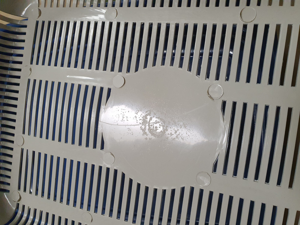 Производителем не продумана решетка - в центре большой сплошной круг. Кот частенько усаживается на него, лапы и хвост в итоге мокрые. Пришлось самим перфорировать отверстия.
