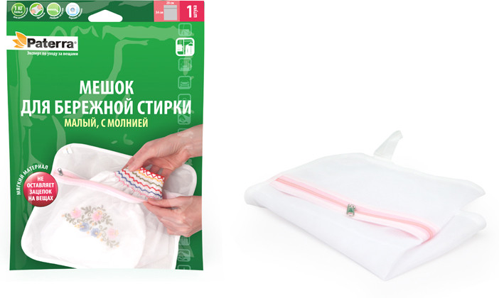 Paterra Мешок для бережной стиркиВ данный момент этот товар отсутствует в продаже. Возможно, у нас найдется аналогичный или похожий товар здесь. Мешок идеален для мелких вещей и белья. При использовании мешка вещи не изнашиваются в процессе стирки. Белье не перепутывается, не теряется, например, более мелкое белье не попадает внутрь пододеяльника. Мешок не позволяет мелким деталям одежды попадать внутрь барабана стиральной машины. Для бережной стирки закрывается при помощи молнии. Прочный, не рвется и долго служит. |