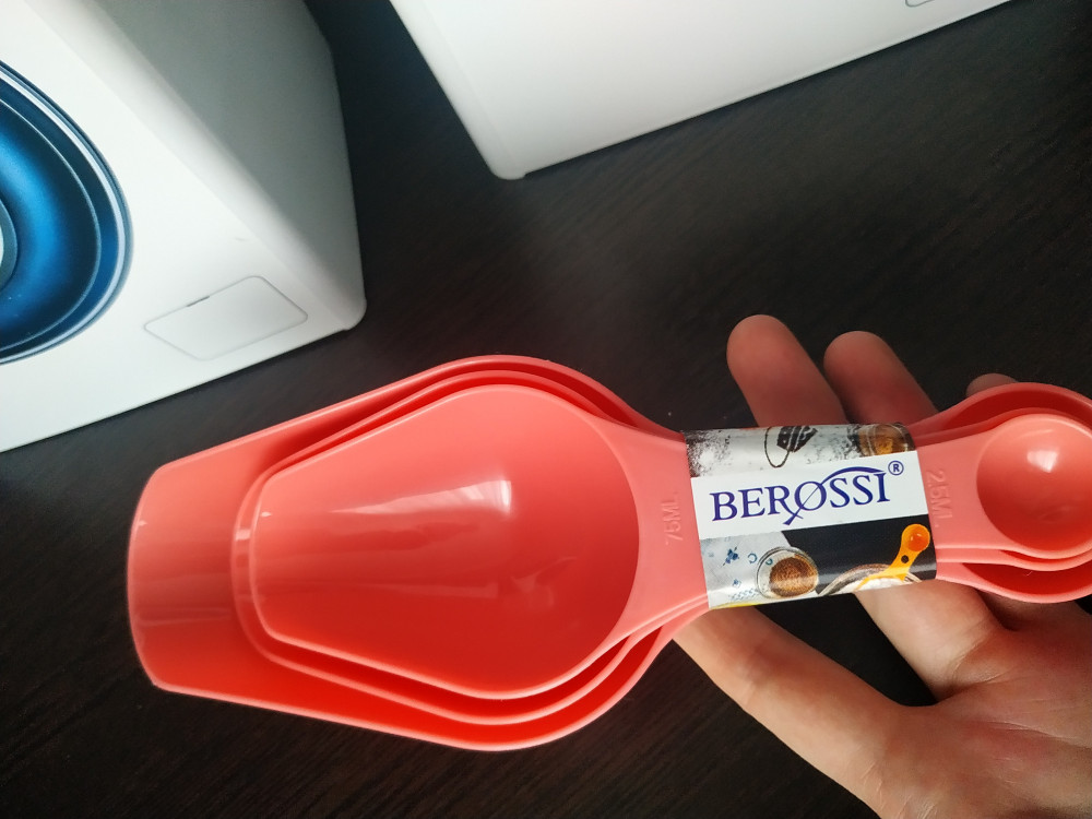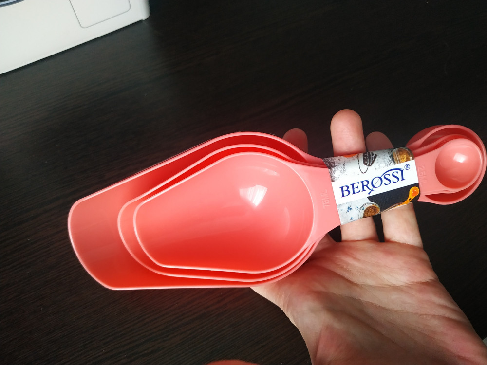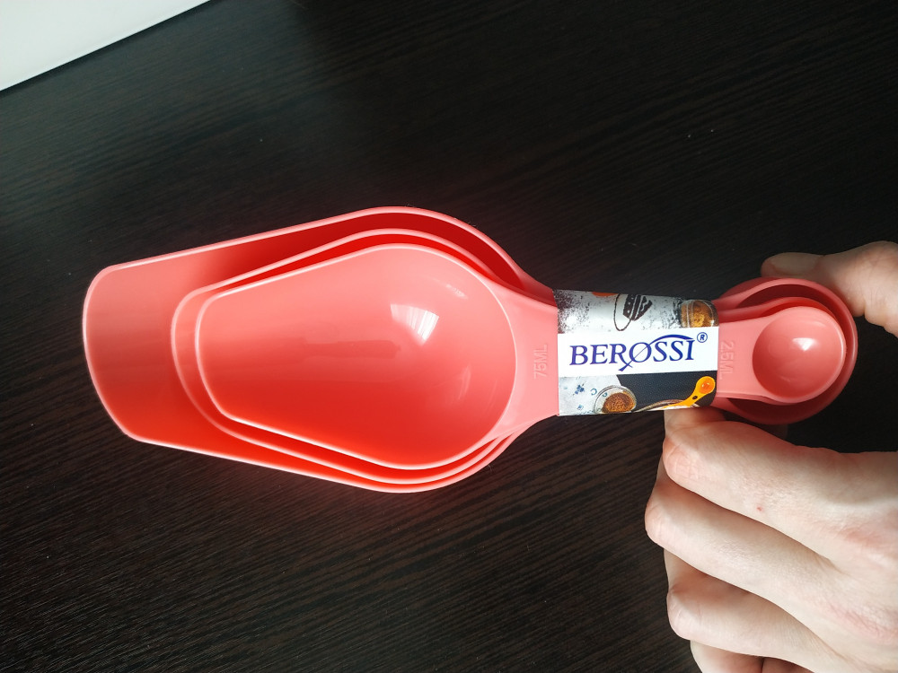 Совочки очень хорошие, не смотря на то, что оказались больше, чем я думала. На самих совочках написан объём, что очень удобно. С другой стороны кстати имеются маленькие мерные ложечки, просто супер помогают на кухне 🥰