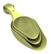 Очень удобные совочки,на ручке можно отмерять жидкость или сыпучие вещества от 2,5 мл до20 мл,а сами совочки от 75 мл до 200.