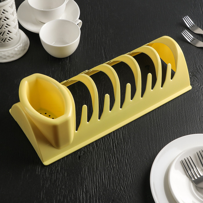 Мне очень понравилась подставка. По сравнению с аналогичным, большими и с поддонами, эта - самое то. Занимает мало места и можно поставить и на полотенчико, и на разнос.
