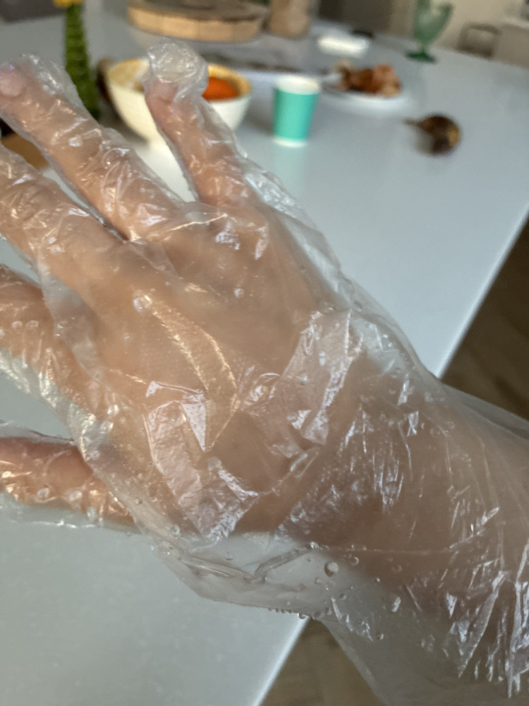 Использую при замешивании теста, нарезки рыбы, острого перца. Перчатки тонкие. Хватает примерно на полгода.
