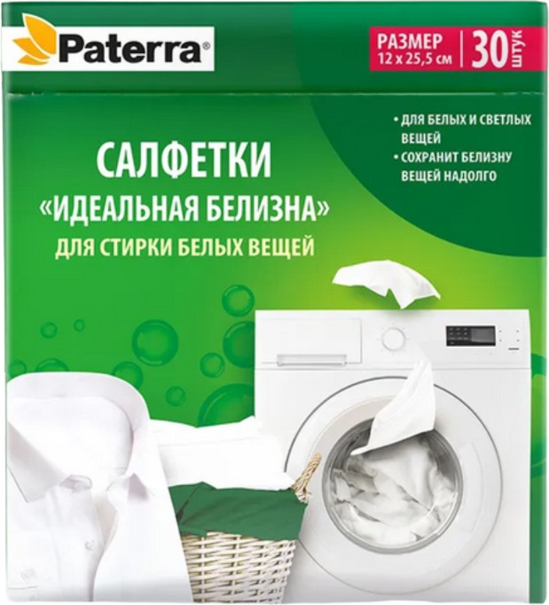 Paterra Салфетки для стирки белых вещей «Идеальная белизна»-20% +60 собирает ворсинки удаляет грязь экономичные не отбеливает