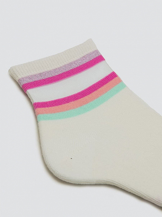 думала обычные носочки, с разноцветной окантовкой на лодыжке, но принт разочаровал - сеточка и блёстки не понравились. отказ
