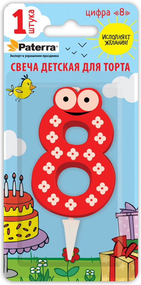 Paterra Свеча для торта «Цифра 8»-25% +6 внешний вид короткий фитиль сложно зажигается