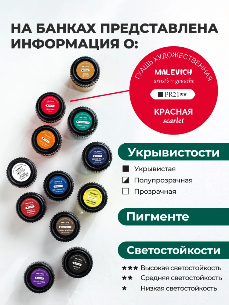МалевичЪ Гуашь художественная-25% +133