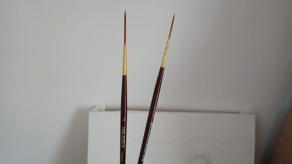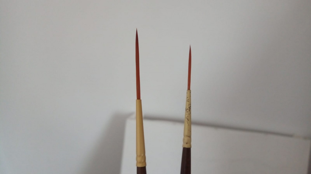 Так как кисточки дешёвые, взяла две побаловаться. Одна хорошая, вторая пришла в каких-то пятнах коррозии... В остальном ничего особенного.