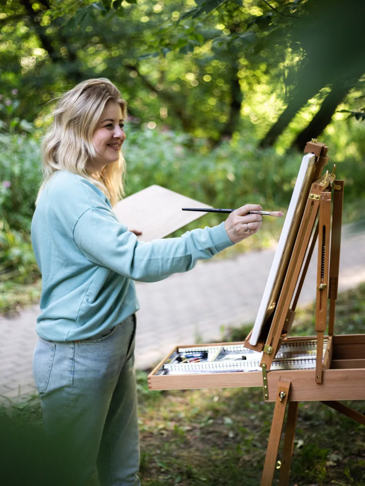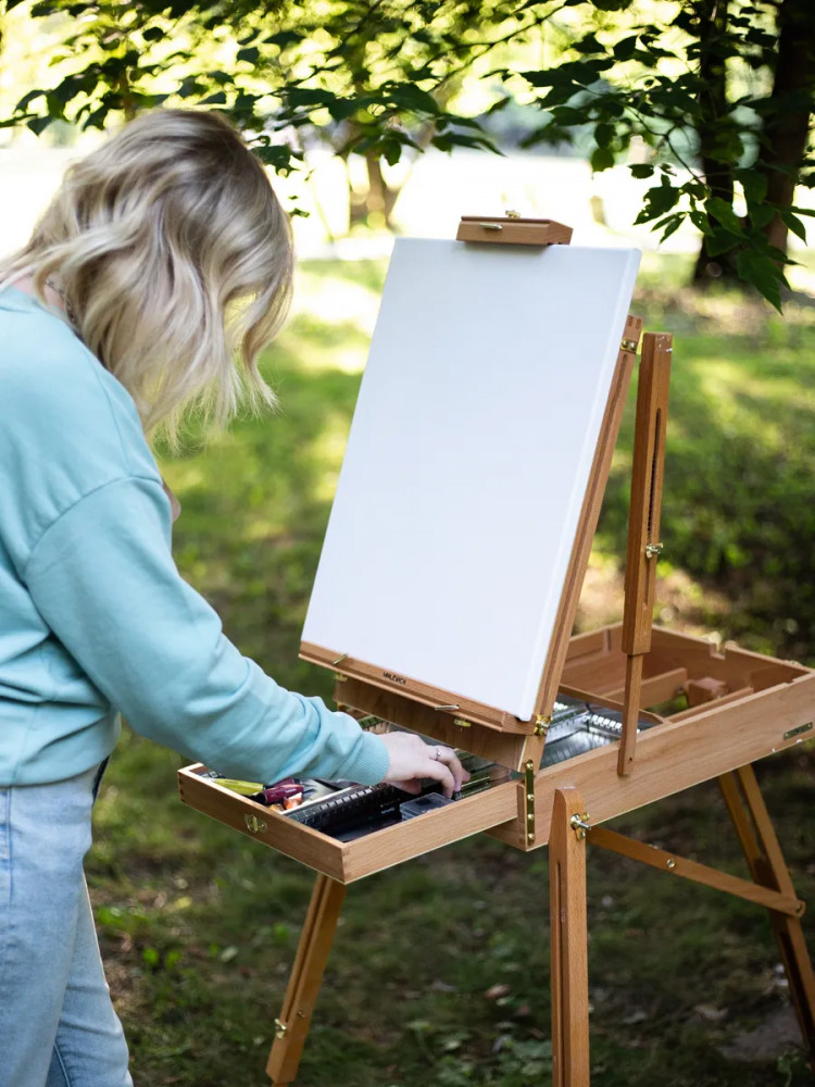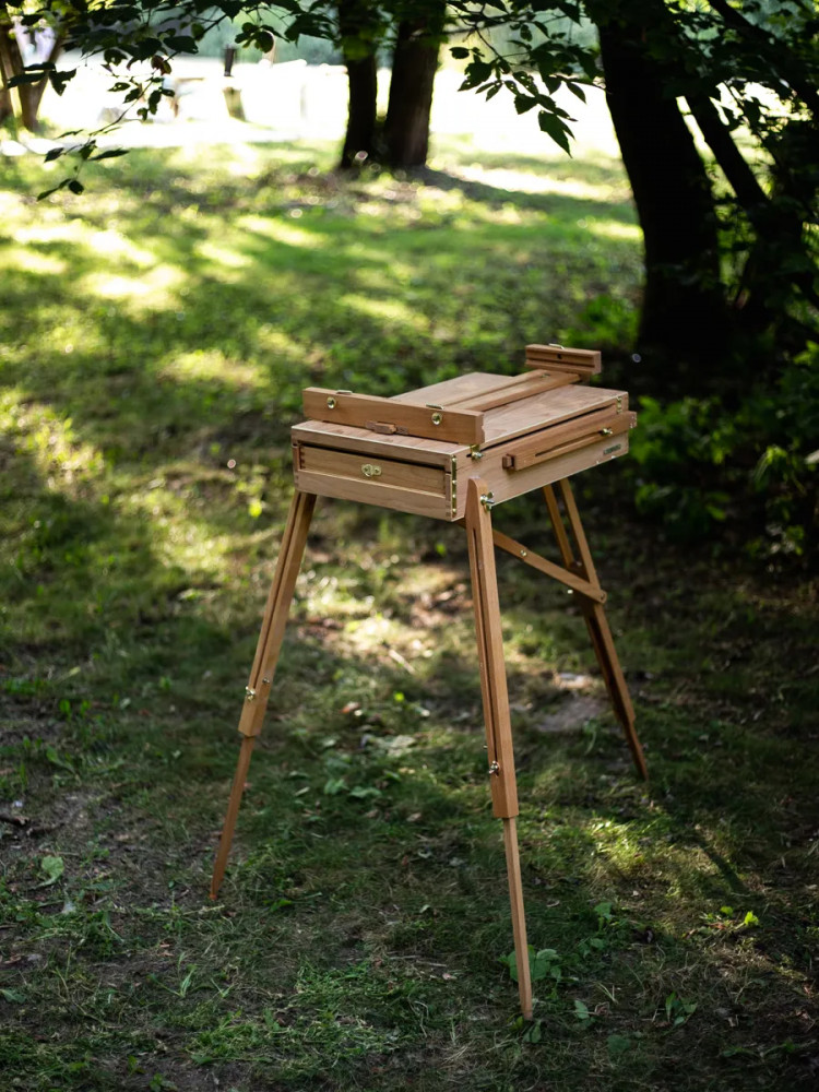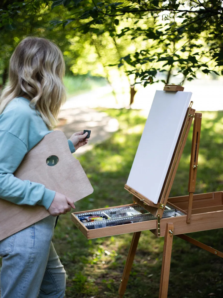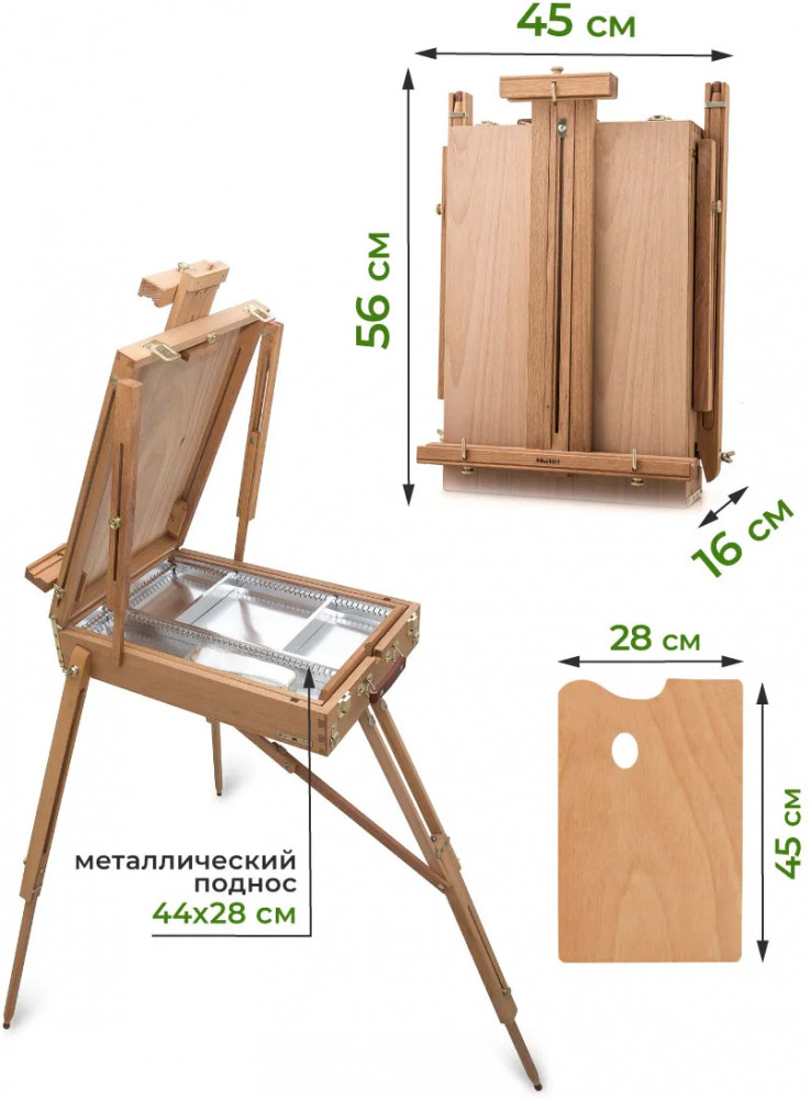 💳 Оплатить за товар можно при получении 🇰🇿 Есть бесплатная доставка по Казахстану от 1 дня 🎁 Копите бонусы с каждой покупки Этюдный ящик Малевичъ удобен для живописи в студии и на природе. Выполненный из английского бука, с прочными телескопическими ножками и регулирующимся наклоном холста, он позволяет работать как сидя, так и стоя. Для удобства переноски этюдник оснащен кожаной ручкой и широким наплечным ремнем. |