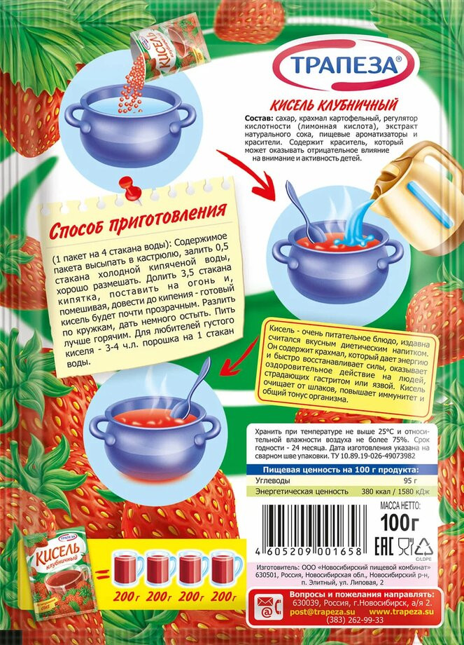 Трапеза Кисель «Клубничный»+11 кисель нет вкуса нет запаха не похож