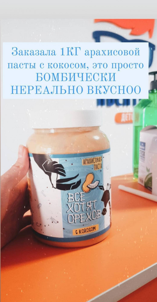 Очень понравилась паста арахисовая с КОКОСОМ. Вкусная. Кокос придаёт пикантность.