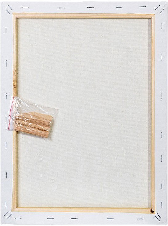 Натянут ужасно, пришлось забивать клинья, а они оказались все разного размера. Половина не входят в пазы, а другая половина просто выпадают. Подрамник тоже не очень качественный