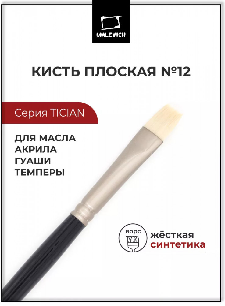 МалевичЪ Кисть «Tician»В данный момент этот товар отсутствует в продаже. Возможно, у нас найдется аналогичный или похожий товар здесь. Серия: Tician Кисти серии «Tician» от компании «Малевичъ» изготовлены из жесткой синтетики белого цвета, имитирующей щетину. Этот ворс отлично подходит для густых красок — таких, как масло, акрил, гуашь, темпера. Кисти выполнены в благородной цветовой гамме: черная лаковая ручка с лаконичной маркировкой и матовая металлическая втулка теплого оттенка делают эти кисти не только надежным художественным инструментом, но и красивым аксессуаром. Кисть держит свою форму даже при частом использовании, ворс прочно закреплен, а втулка не расшатывается со временем. Ручка — длинная (25 см). Выставка (длина ворса) — короткая. Номер кисти соответствует диаметру обоймы в миллиметрах. |