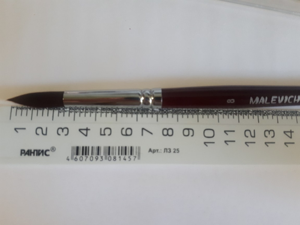 Кисть классная! Достаточно вбирает краску, удобная, кончик при намакании заостряется.