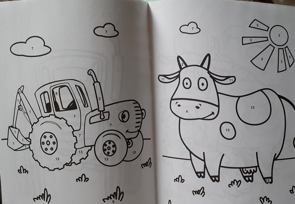 УМка Синий трактор. Раскраска по номерам-35% +8 маленький формат простая раскраска понравилось детям есть животные