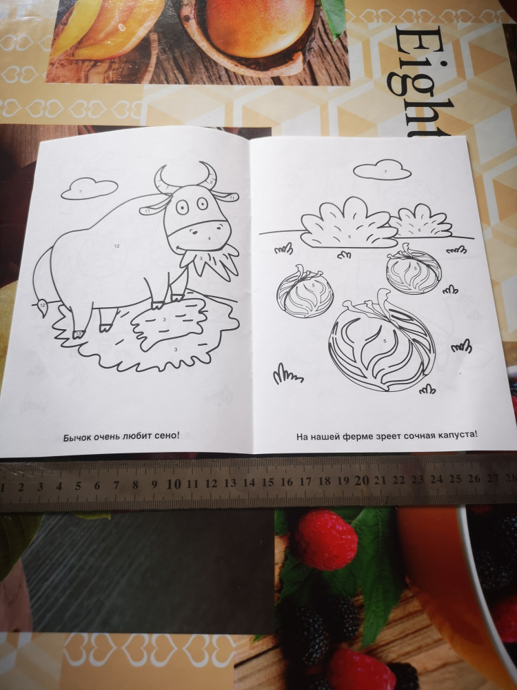 Раскраска интересная, здесь не только трактор, а есть и животные и растения. После раскрашивания можно будет изучать животных. Есть один минус, на картинках изображены только цифры, приходится каждый раз возвращаться на обложку, где указаны цвета. Но думаю, это не проблема, таким образом можно тренировать память и внимание.