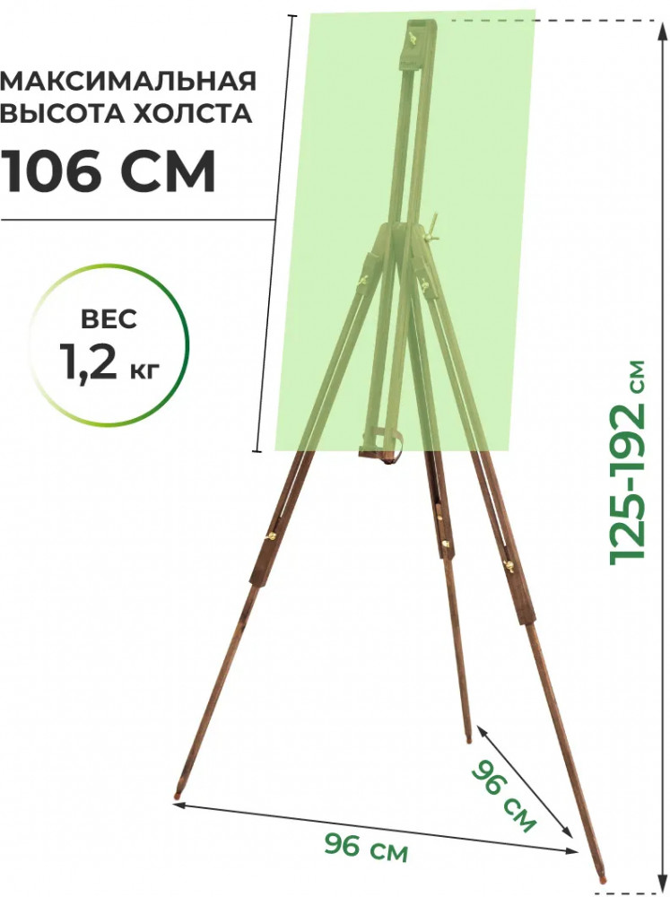 💳 Оплатить за товар можно при получении 🇰🇿 Есть бесплатная доставка по Казахстану от 1 дня 🎁 Копите бонусы с каждой покупки Складной мольберт-тренога МЛ-18 от компании «Малевичъ». Выполнен из сосны высокого качества, покрыт специальным защитным составом, который придает мольберту благородный «винтажный» вид. Может использоваться в помещении и на улице. Пригоден и для экспозиции. Позволяет задать любой угол наклона холста вплоть до горизонтального положения. Максимальная высота холста — 106 см. |