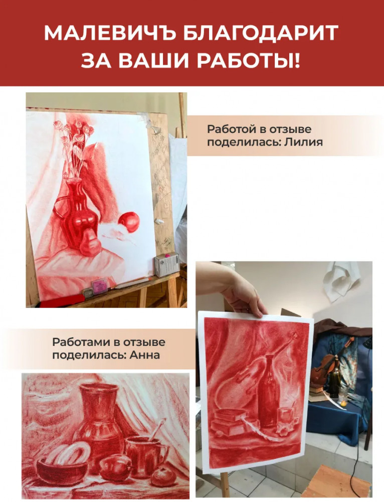 💳 Оплатить за товар можно при получении 🇰🇿 Есть бесплатная доставка по Казахстану от 1 дня 🎁 Копите бонусы с каждой покупки Материалы для художественной графики Малевичъ обладают высокой кроющей способностью, работать ими легко и приятно, пигмент мягко ложится на бумагу, достаточно легкого штриха. Мелки квадратной формы позволяют закрывать большую площадь и делать тонкие штрихи. Отлично подходит для набросков и портретов. |