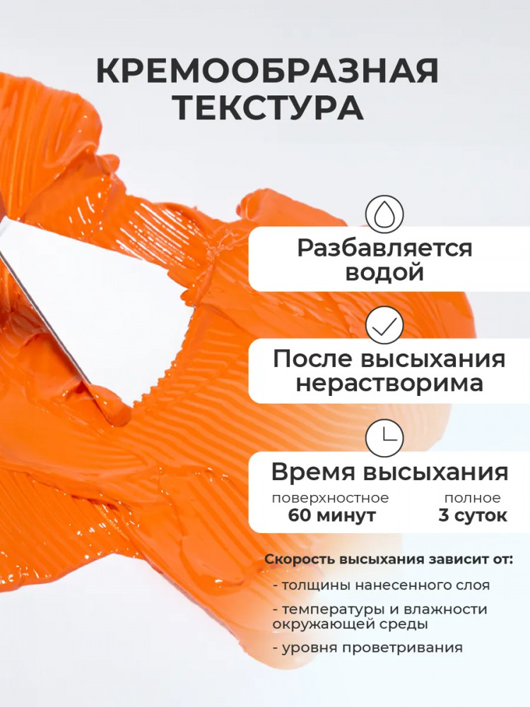 Удобно работать, набирая краску прямо из горлышка тубы: сохнет очень быстро. Цвет насыщенный, укрывистость соответствует, приятная однородная паста краски, сохраняющая рельефность мазка.