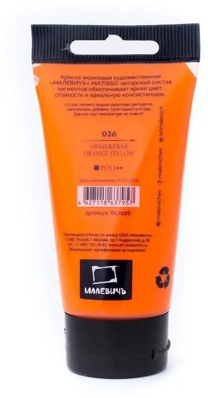 МалевичЪ Краска акриловая «Matisso», 026 оранжевый