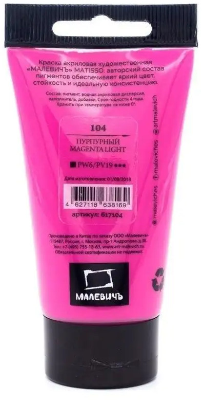 МалевичЪ Краска акриловая «Matisso», 104 пурпурный