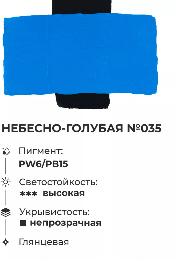 Удобно работать, набирая краску прямо из горлышка тубы: сохнет очень быстро. Цвет насыщенный, укрывистость соответствует, приятная однородная паста краски, сохраняющая рельефность мазка.