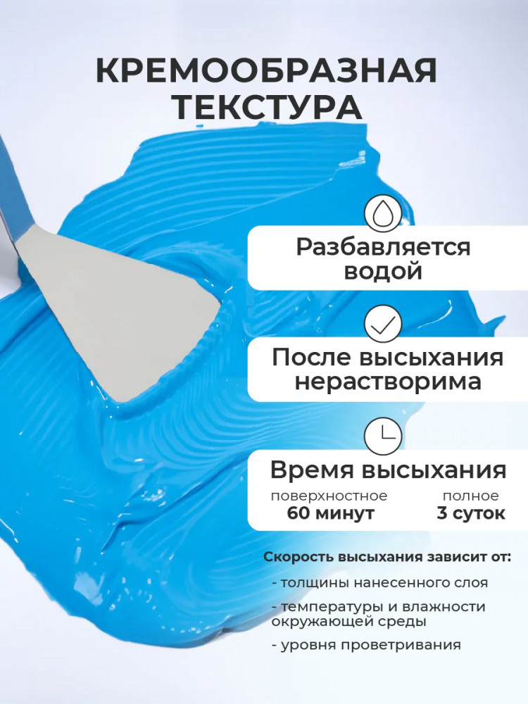краска густоватая что можно разбавить водой ,но только не много если больше воды добавить то цвет будет светлый белый