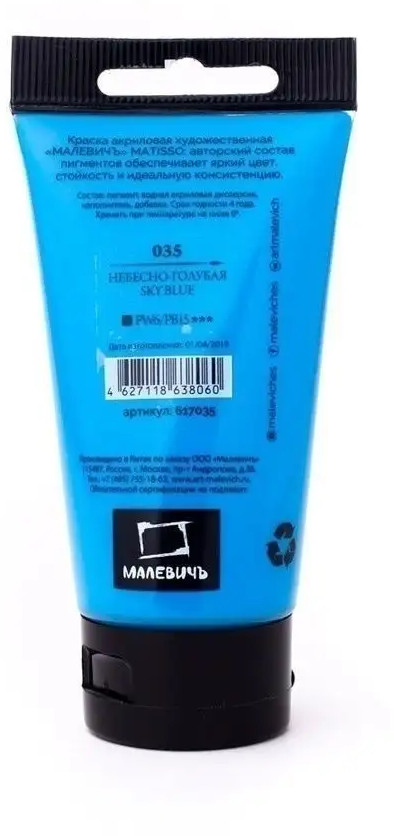 МалевичЪ Краска акриловая «Matisso», 035 небесно-голубой