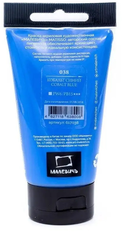 МалевичЪ Краска акриловая «Matisso», 038 кобальт синий