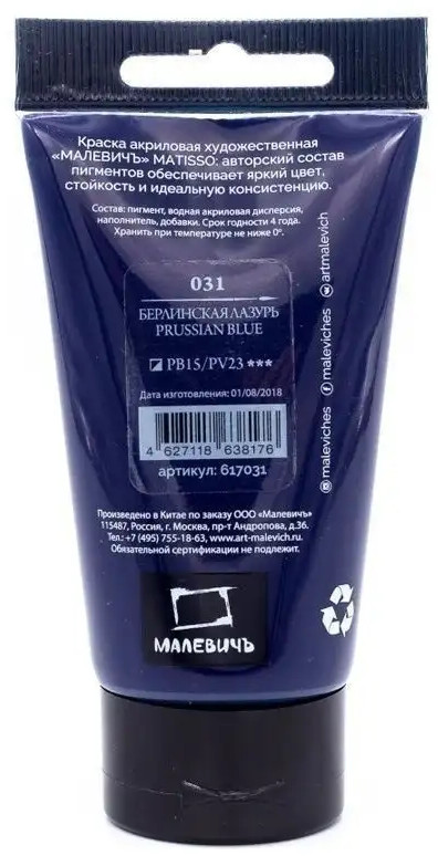 МалевичЪ Краска акриловая «Matisso», 031 берлинская лазурь