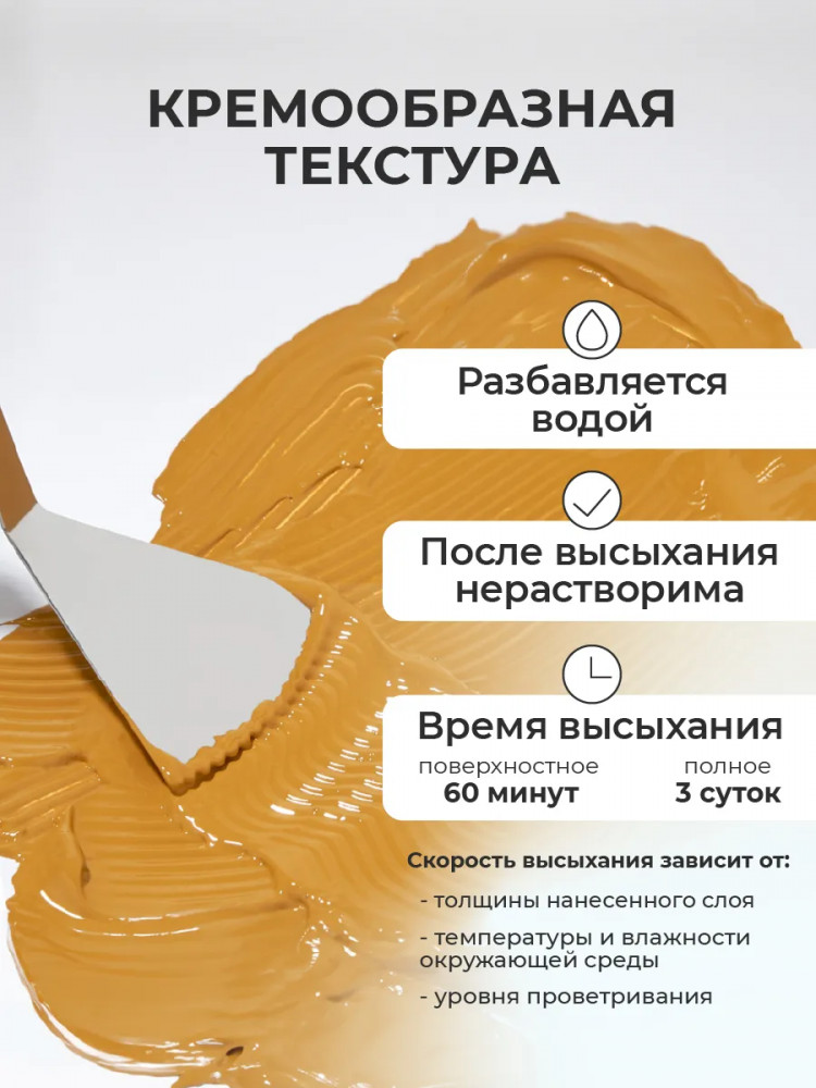 краска густоватая что можно разбавить водой ,но только не много если больше воды добавить то цвет будет светлый белый