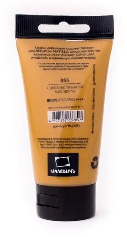 МалевичЪ Краска акриловая «Matisso», 083 сиена натуральная