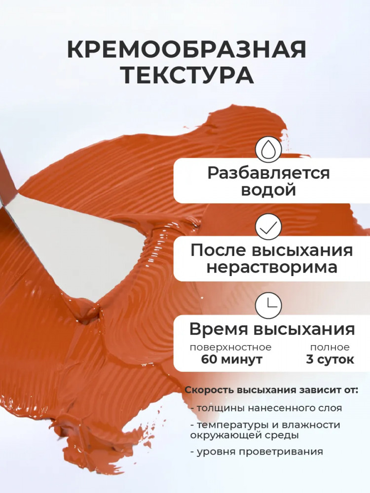 краска густоватая что можно разбавить водой ,но только не много если больше воды добавить то цвет будет светлый белый