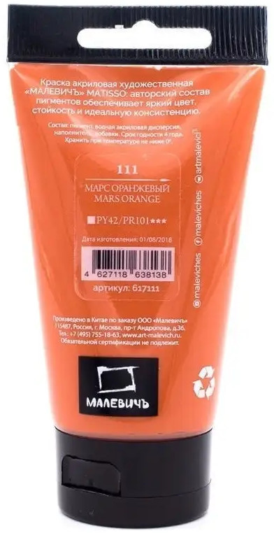 МалевичЪ Краска акриловая «Matisso», 111 марс оранжевый