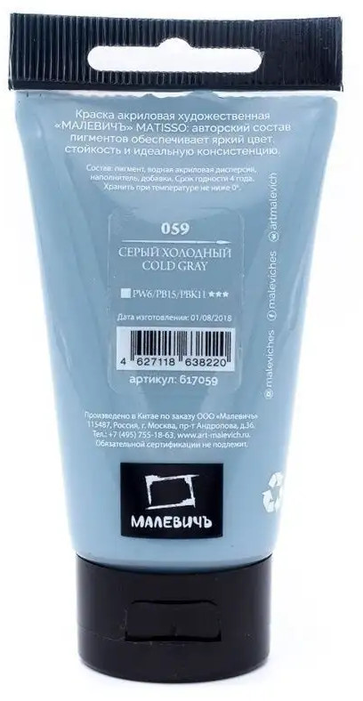 МалевичЪ Краска акриловая «Matisso», 059 серый холодный