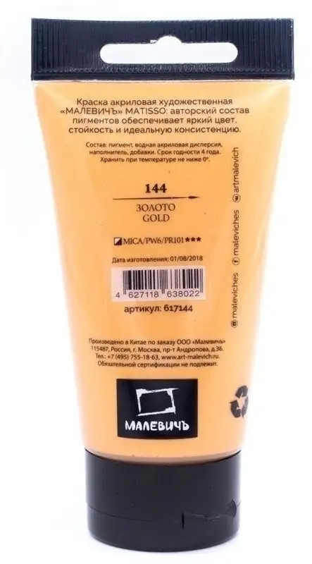 МалевичЪ Краска акриловая «Matisso», 144 золотой