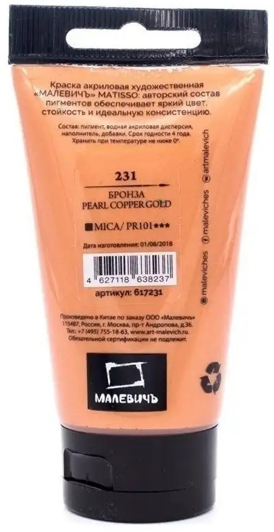 МалевичЪ Краска акриловая «Matisso», 231 бронзовый